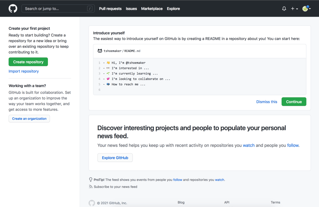Either way, you’ll need to then verify your email address. Go to your inbox and look for an email from GitHub. Click the “Verify email address” button. Doing so will take you to your profile, where, if you’d like, you can add a few details about yourself.