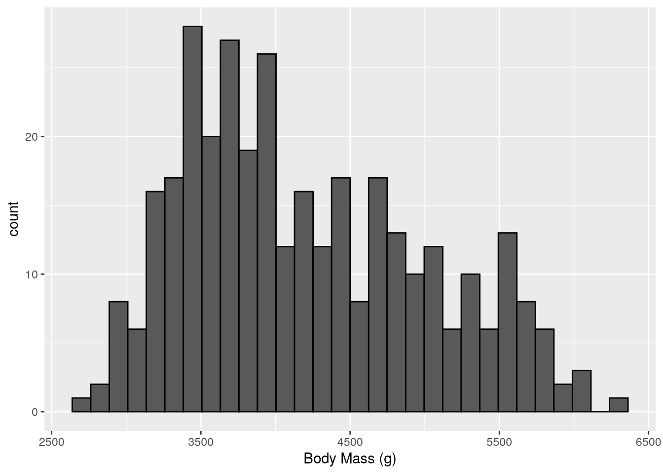 $ body_mass_g : int [1:344] 3750 3800 3250 NA 3450 3650 3625 4675 3475 4250 ...